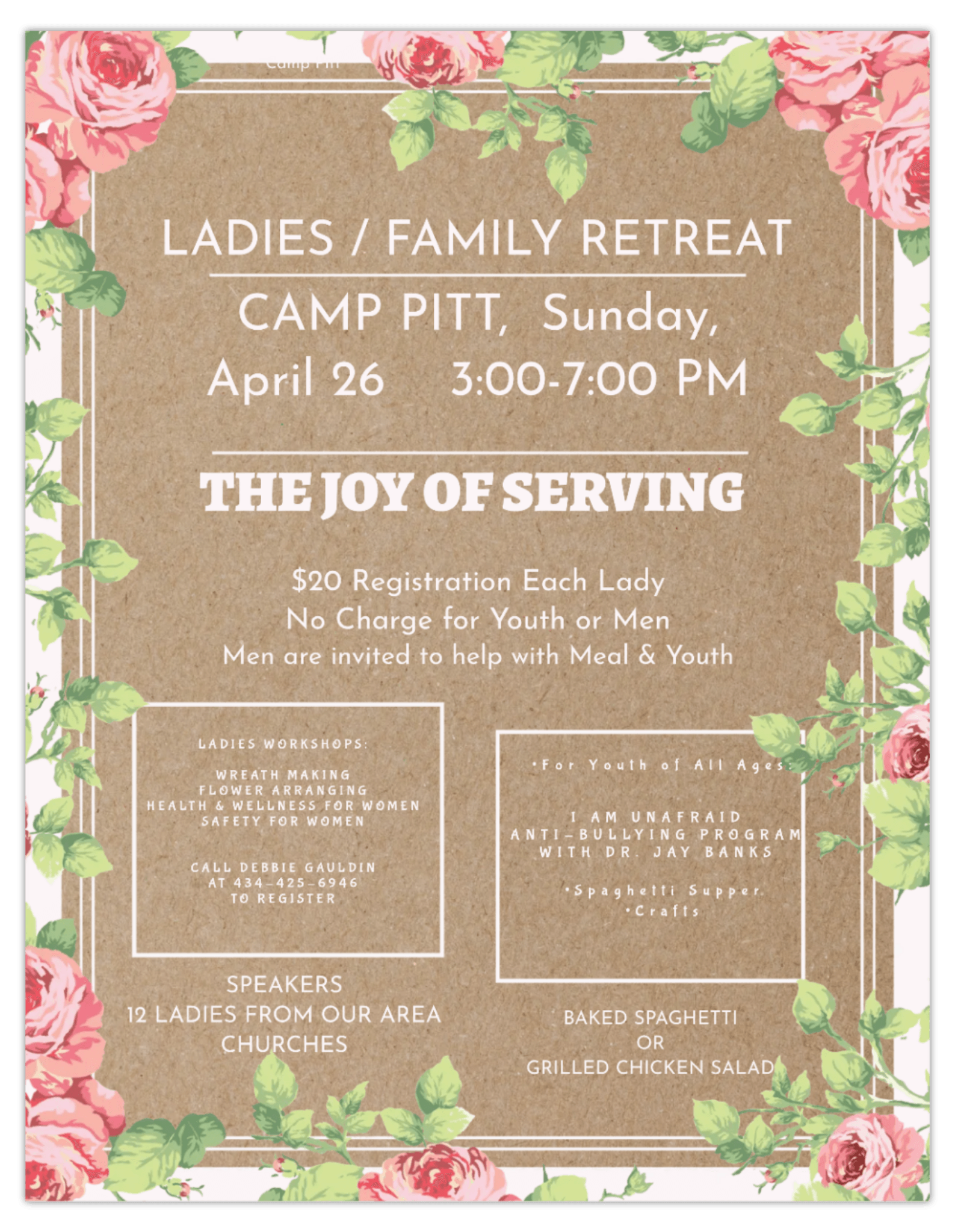 $20 registration for each lady. Programing for youth of all ages!! For the youth we will have Author/Educator, Jay Banks, America’s #1 Anti-Bullying Program, along with Supper & Exciting Activities!